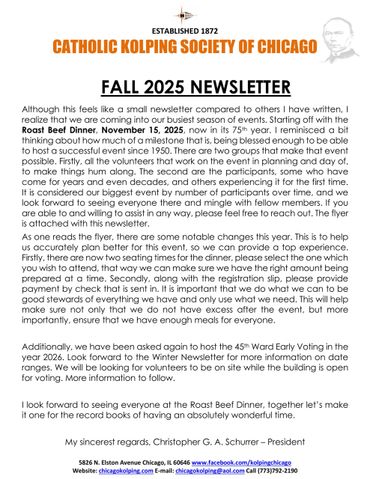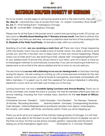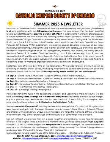 While the needs have changed, the work of Chicago Kolping in Gladstone Park continues to be aimed at the holistic development of the individual and family through membership and networking opportunities, including member activities at our Kolping Center and charitable works. Chicago Kolping Society aims to aid its members and society as a whole as an inclusive organization which welcomes all who wish to practice the teachings of Christ.